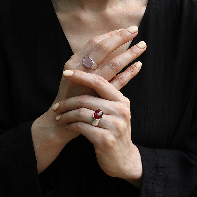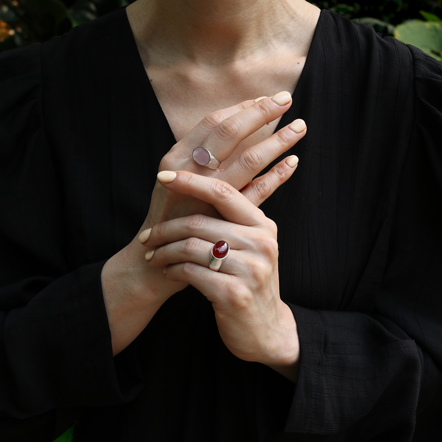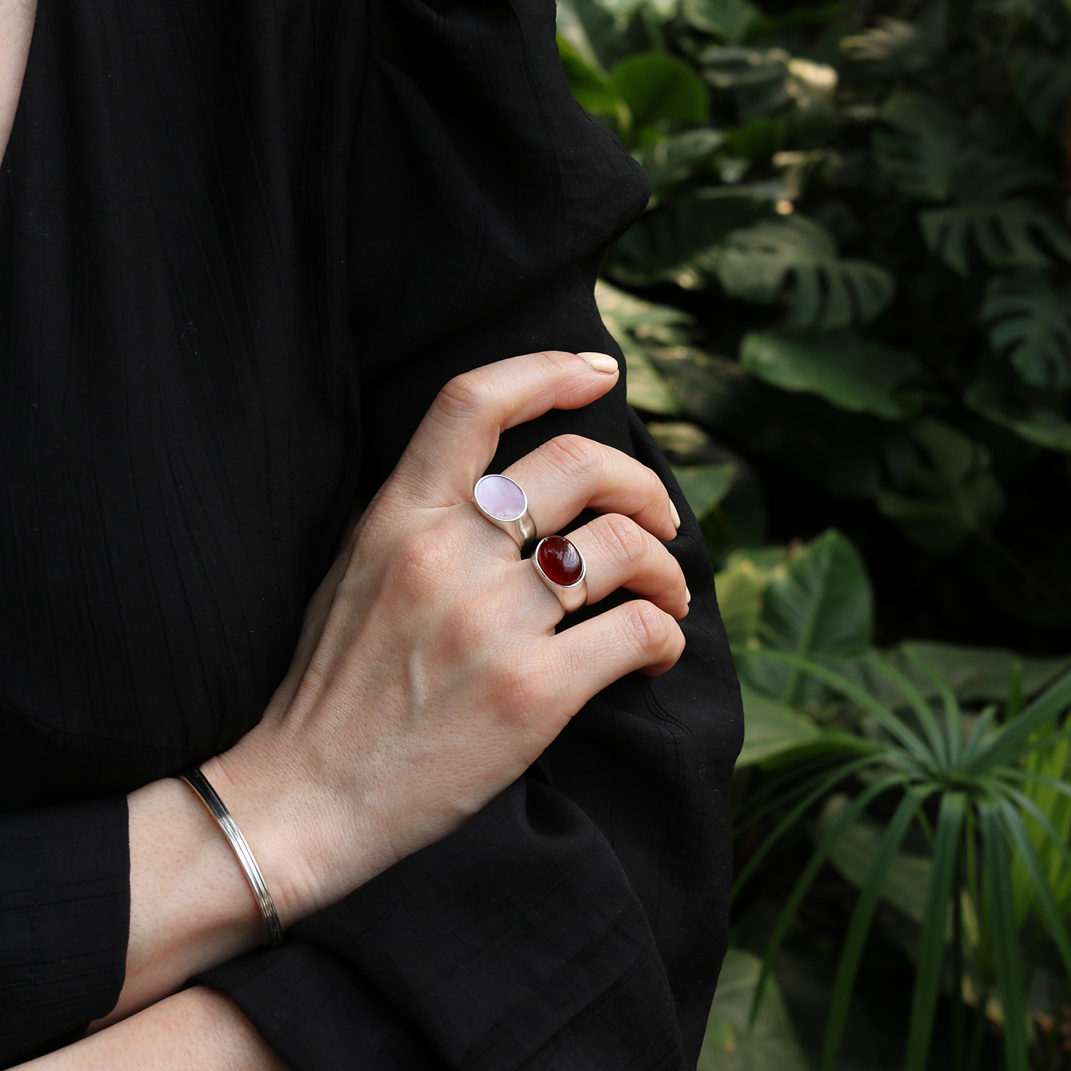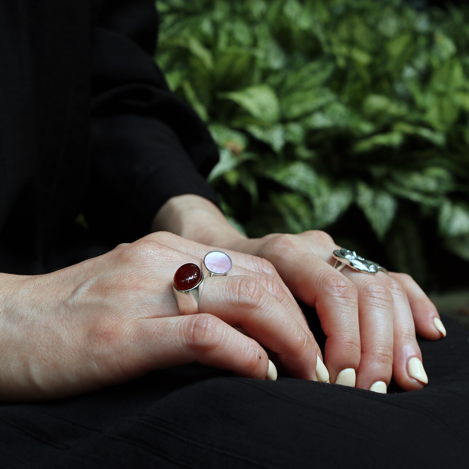Silver 925  I  Pink Mother of Pearl  I  Cabochon cut Red Agate