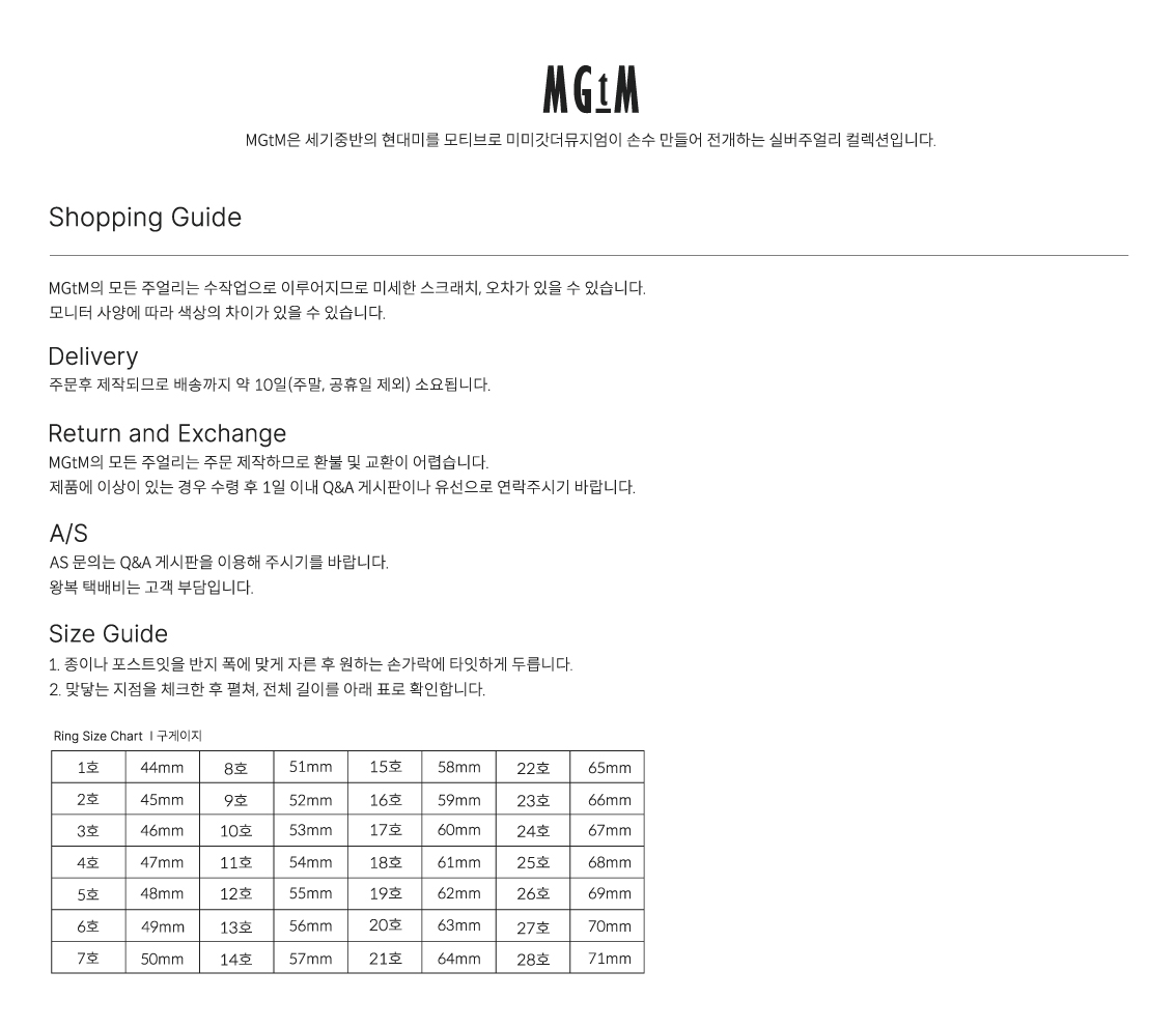 사이즈는 구게이지 기준으로 제작되오니 자가 측정시 참고 바랍니다.